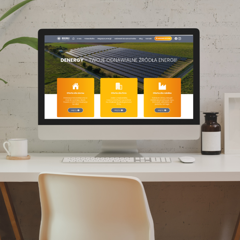 Strona internetowa zrealizowana dla firmy Denergy zajmującej się montażem instalacji fotowoltaicznych zintegrowanych z pompami ciepła oraz klimatyzacji. Strona prezentuje ofertę firmy, realizacje oraz oferowane produkty. Integracja z MailerLite pozwala sprawnie pozyskiwać kontakty do potencjalnych klientów oraz budować listę mailingową.
