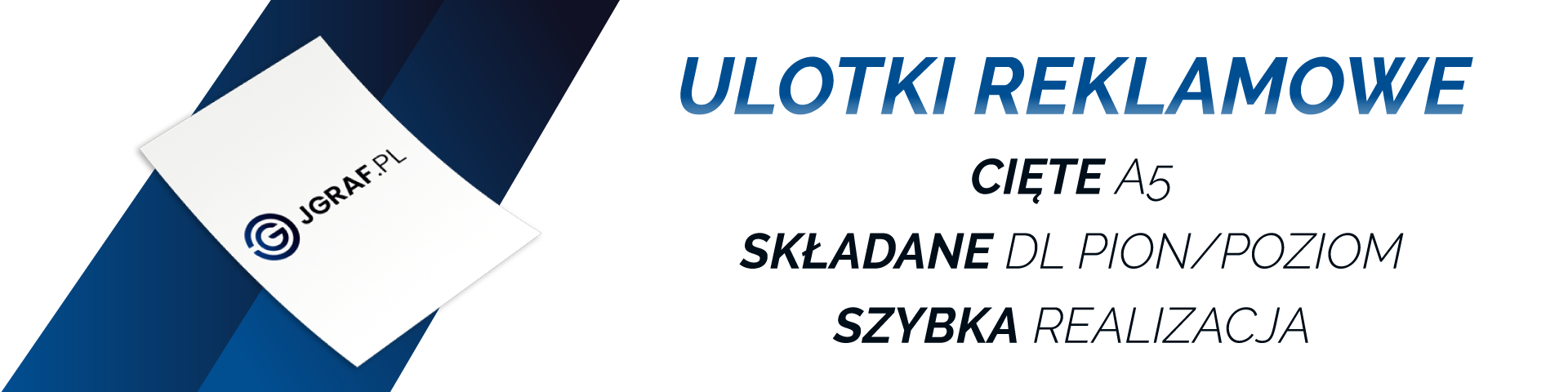 Ulotki reklamowe dają świetną możliwość, aby zaprezentować ofertę swojej firmy. Dwustronnie zadrukowane ulotki w formacie A5 będą świetną formą reklamy dla Twojej firmy. Wysokiej jakości papier kredowy (do wyboru wersja mat lub połysk) o gramaturze 250g będzie wywoływał pierwsze, dobre wrażenie wśród potencjalnych klientów naszej firmy.